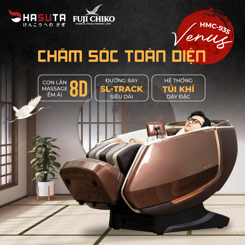 Theo thống kê hiện nay, số người mắc các bệnh về cơ xương khớp ngày càng có xu hướng gia tăng và trẻ hóa. Bên cạnh đó, với cường độ làm việc căng thẳng, việc rơi vào stress dẫn đến trầm cảm rất dễ xảy ra. Hướng tới giải pháp toàn diện cho vấn đề này, Hasuta mang đến dòng ghế massage FUJI CHIKO FJC - 935. Dòng ghế massage cao cấp, là chìa khóa giúp bạn tái tạo sức khỏe thể chất cũng như nguồn năng lượng trong mỗi người. Hơn vậy, đây còn là chiếc ghế đặc biệt phù hợp cho những ai muốn sở hữu cho mình một không gian thư giãn đẳng cấp, xua tan căng thẳng, mệt mỏi, nâng tầm cuộc sống theo cách của riêng mình.