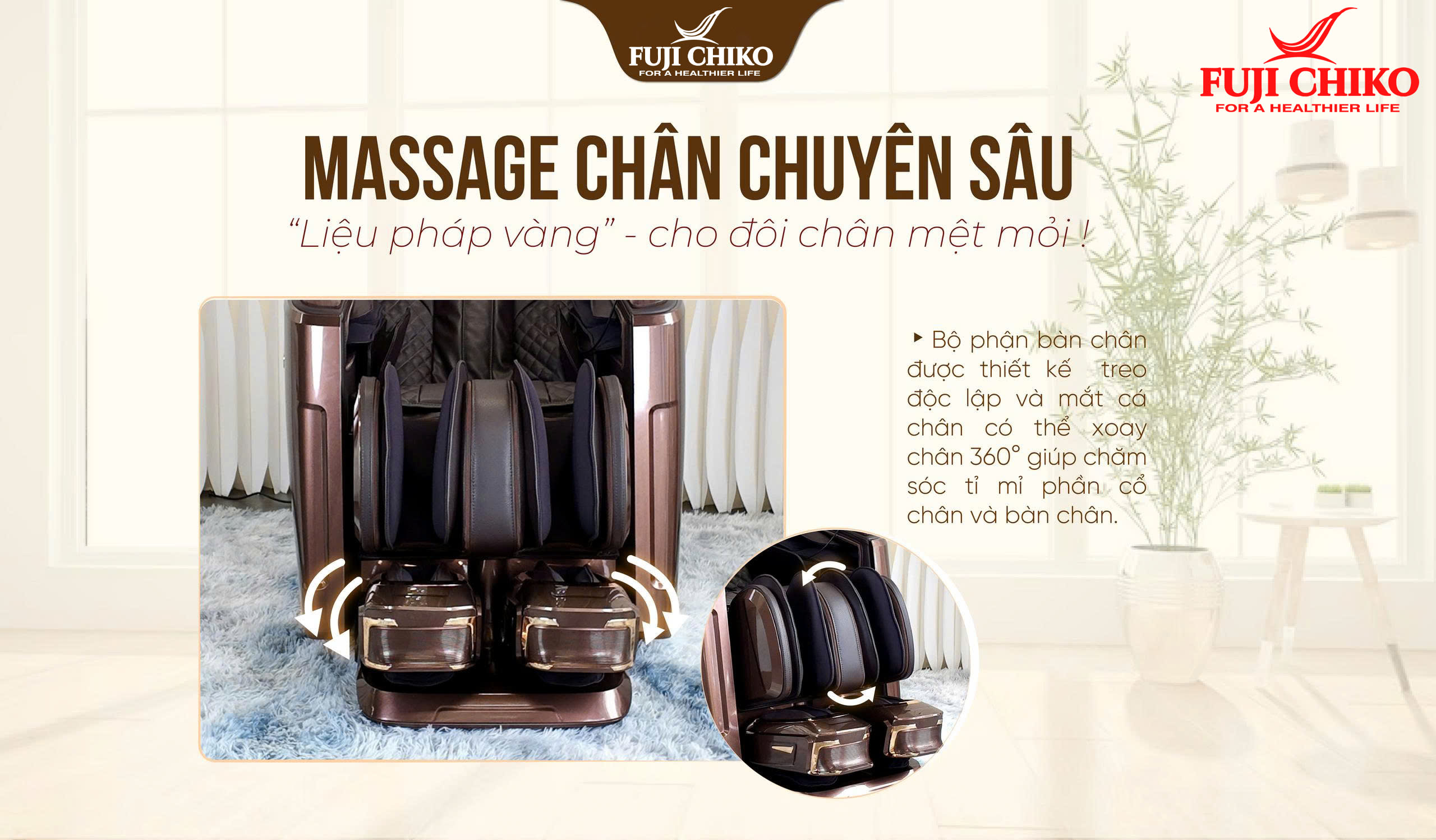 Với FUJI CHIKO FJC - 730i PLUS , đôi chân – “trái tim thứ hai” của cơ thể bạn sẽ được nâng niu và chăm sóc mỗi ngày như tại spa chuyên nghiệp. Đây chính là liệu pháp thư giãn lý tưởng cho những ai thường xuyên di chuyển, làm việc đứng lâu, hoặc đơn giản chỉ cần một chút yêu thương sau một ngày dài mệt mỏi.