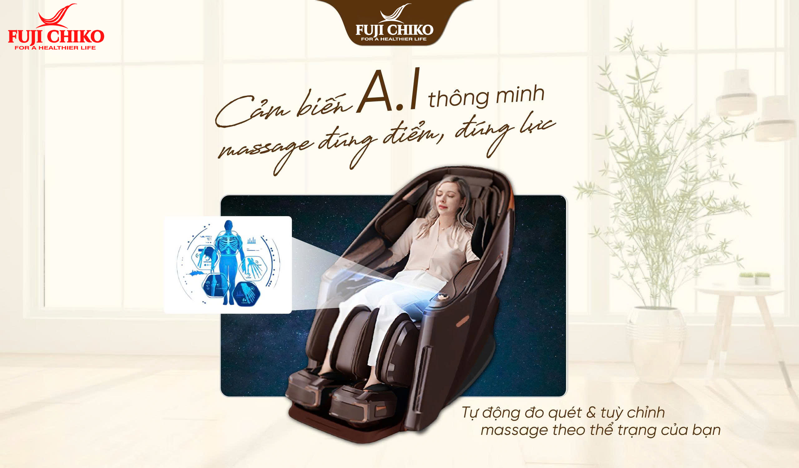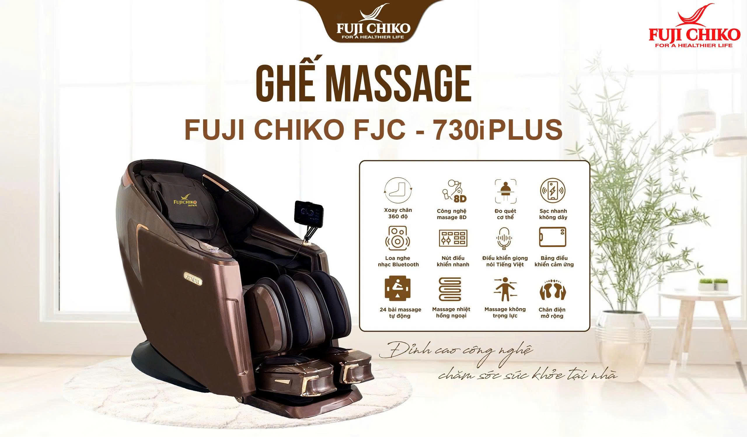 Nếu bạn đang tìm kiếm một chiếc ghế massage đa năng, thông minh và đẳng cấp, thì FUJI CHIKO FJC - 730i PLUS chính là lựa chọn hoàn hảo dành cho bạn. Không chỉ giúp thư giãn và phục hồi năng lượng, chiếc ghế này còn chủ động chăm sóc, theo dõi sức khỏe cho bạn và cả gia đình mỗi ngày.