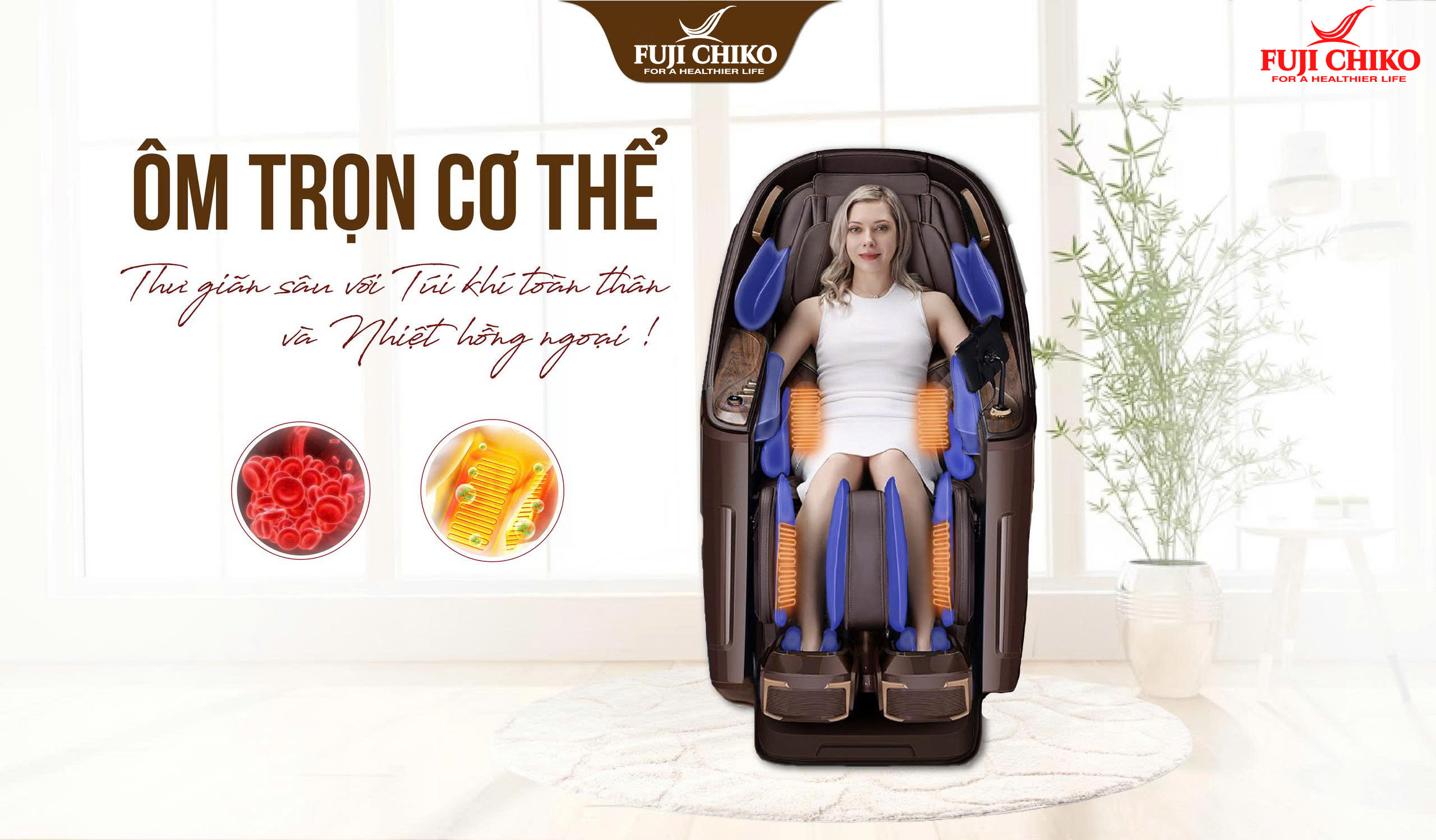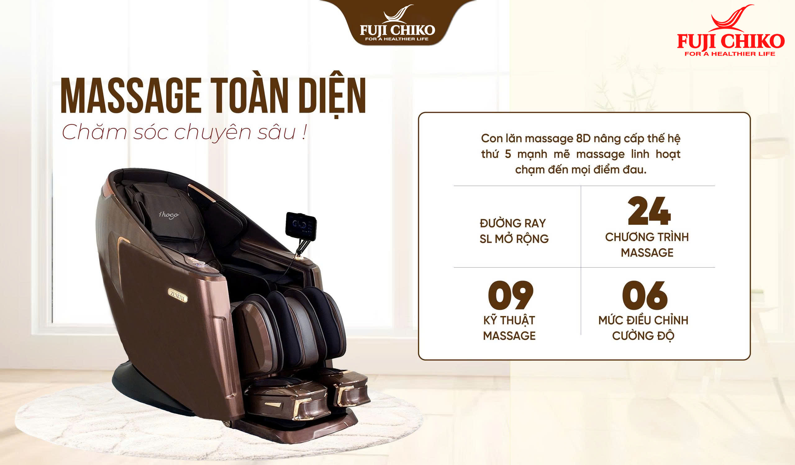 Trong guồng quay hối hả của cuộc sống hiện đại, việc chủ động chăm sóc sức khỏe mỗi ngày không còn là lựa chọn, mà đã trở thành nhu cầu thiết yếu. Nếu như trước đây ghế massage từng được xem là món đồ xa xỉ, thì ngày nay, nó đã trở thành trợ thủ đắc lực trong hành trình chăm sóc sức khỏe của mọi gia đình. Trong số các dòng ghế massage cao cấp trên thị trường, nổi bật lên là FUJI CHIKO FJC - 730i PLUS – phiên bản nâng cấp đột phá từ model FJC - 730i PLUS huyền thoại. Sản phẩm không chỉ giữ vững tinh hoa công nghệ massage thông minh, mà còn được tích hợp thêm tính năng kiểm tra sức khỏe tự động, giúp bạn dễ dàng theo dõi thể trạng và chăm sóc cơ thể ngay tại nhà – một cách tiện lợi, chủ động và toàn diện hơn bao giờ hết.