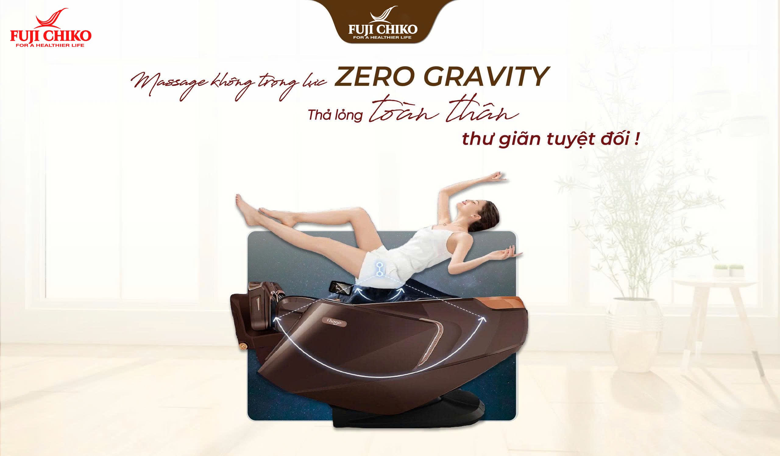 Một trong những điểm nhấn ấn tượng của FUJI CHIKO FJC - 730i PLUS chính là chế độ Zero Gravity (không trọng lực). Đây là tư thế massage được các chuyên gia đánh giá cao trong việc hỗ trợ thư giãn và chăm sóc sức khỏe toàn diện. Khi kích hoạt chế độ này, ghế sẽ từ từ ngả về sau, đưa chân lên ngang hoặc cao hơn tim, tạo thành một góc tối ưu giúp: