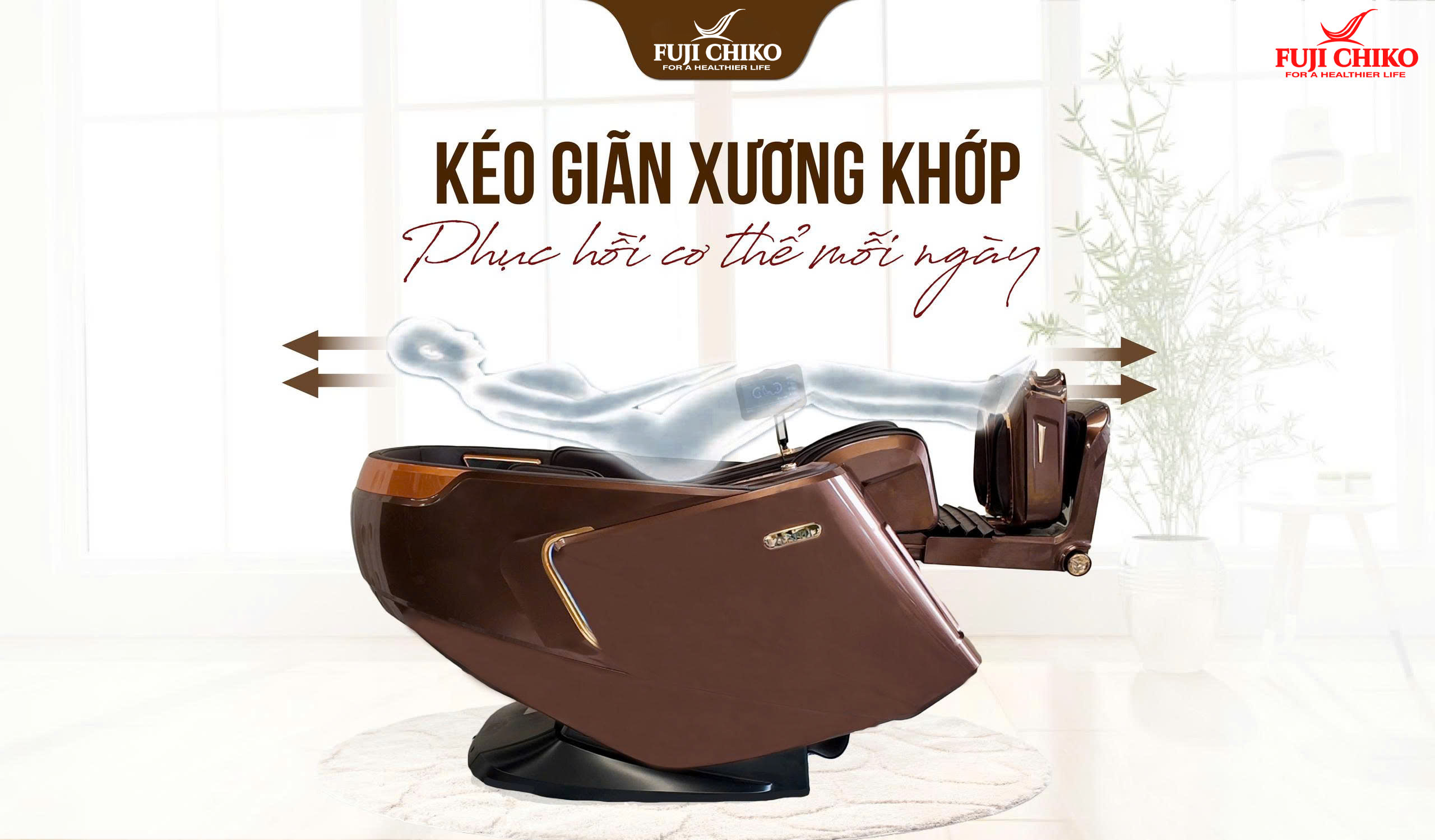 Ghế massage FUJI CHIKO FJC - 730i PLUS còn sở hữu tính năng kéo giãn cơ thể được thiết kế đặc biệt để chăm sóc toàn diện cho xương khớp và cơ bắp. Tính năng này giúp thư giãn cột sống, giảm áp lực và chèn ép lên các dây thần kinh, mang lại cảm giác nhẹ nhàng, thoải mái sâu bên trong. Đồng thời,nó còn giúp cải thiện tư thế, tăng cường sự linh hoạt cho cơ thể. Đây là giải pháp lý tưởng cho những người thường xuyên ngồi lâu, làm việc văn phòng hoặc người cao tuổi thường xuyên gặp vấn đề về sức khỏe xương khớp.