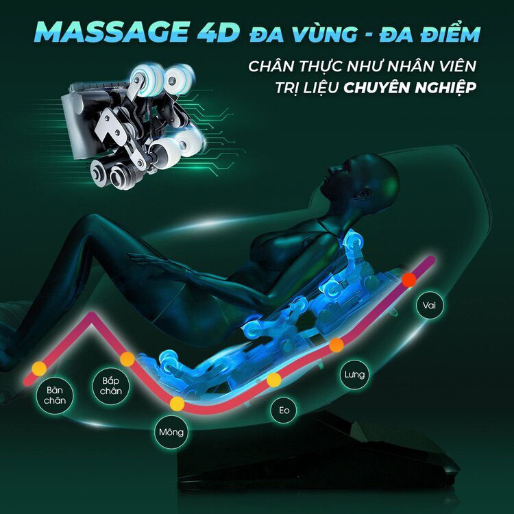 Chính vì vậy rô bốt massage có thể tác động sâu tới các huyệt đạo nhưng không gây cảm giác đau nhức. Từ đó ghế có thể thực hiện được các bài tập massage trị liệu chuyên sâu hỗ trợ các căn bệnh đau nhức xương khớp, thoát vị đĩa đệm, đau dây thần kinh tọa,…