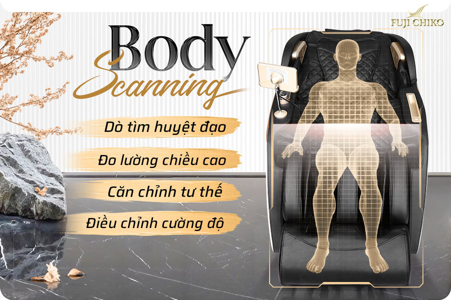 Chức năng dò quét số đo cơ thể trong ghế massage là một tính năng thông minh được thiết kế để tùy chỉnh chương trình massage sao cho phù hợp với từng người sử dụng. Các thông số như chiều cao, vị trí của các điểm áp lực cơ bản, và vùng cơ bản sẽ được xác định một cách tự động. Dựa trên dữ liệu này, chương trình massage sẽ tự động điều chỉnh độ mạnh yếu, vị trí áp lực và các kỹ thuật massage để đảm bảo rằng người sử dụng có được trải nghiệm massage tốt nhất.