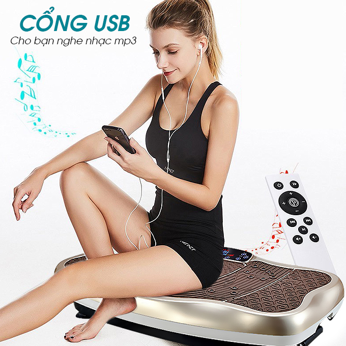- Nge nhạc: khi tập luyện cùng máy rung giảm béo toàn thân Fuki bạn sẽ tăng thêm cảm hứng nếu vừa tập vừa nghe nhạc, với khe cắm usb thuận tiện cho bạn nghe những bài nhạc yêu thích.